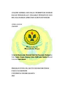 ALFIANI, ANNISA (2024) ANALISIS KINERJA KEUANGAN PEMERINTAH DAERAH DALAM PENGELOLAAN ANGGARAN PENDAPATAN DAN BELANJA DAERAH (APBD) PADA KABUPATEN BOGOR. S1 thesis, Universitas Negeri Jakarta.