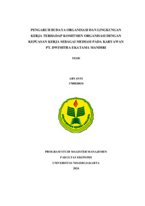 ARYANTI, ARYANTI (2024) PENGARUH BUDAYA ORGANISASI DAN LINGKUNGAN KERJA TERHADAP KOMITMEN ORGANISASI DENGAN KEPUASAN KERJA SEBAGAI MEDIASI PADA KARYAWAN PT. DWIMITRA EKATAMA MANDIR. S2 thesis, Universitas Negeri Jakarta.