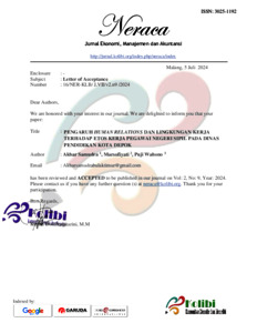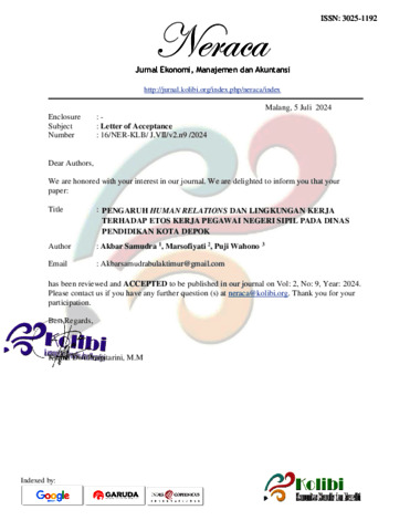 Samudra, Akbar (2024) PENGARUH HUMAN RELATIONS DAN LINGKUNGAN KERJA TERHADAP ETOS KERJA PEGAWAI NEGERI SIPIL PADA DINAS PENDIDIKAN KOTA DEPOK. S1 thesis, Universitas Negeri Jakarta.