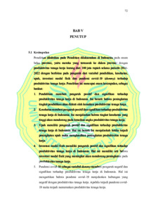 SULISTYAWATI, EKA (2024) FAKTOR-FAKTOR YANG MEMPENGARUHI PRODUKTIVITAS TENAGA KERJA DI INDONESIA PADA ERA PANDEMI COVID-19 EKA SULISTYAWATI. S1 thesis, Universitas Negeri Jakarta.