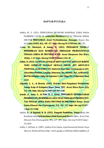 FAKTOR-FAKTOR YANG MEMPENGARUHI PRODUKTIVITAS TENAGA KERJA DI INDONESIA PADA ERA PANDEMI COVID-19 EKA SULISTYAWATI