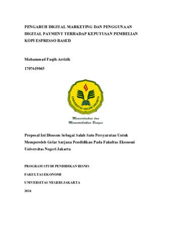 Arrizik, Muhammad Faqih (2024) PENGARUH DIGITAL MARKETING DAN PENGGUNAAN DIGITAL PAYMENT TERHADAP KEPUTUSAN PEMBELIAN KOPI ESPRESSO BASED. S1 thesis, Universitas Negeri Jakarta.