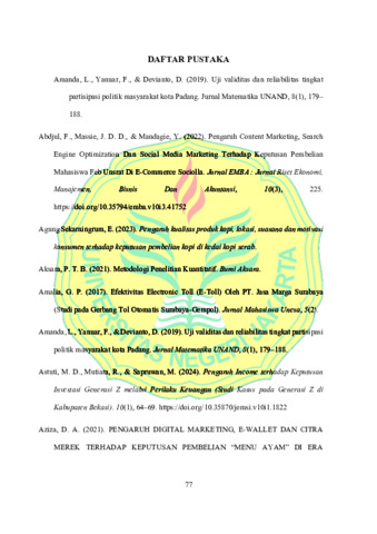 Muhammad Faqih Arrizik. Pengaruh Digital Marketing dan Penggunaan Digital Payment Terhadap Keputusan Pembelian Kopi Espresso Based: Program Studi Pendidikan Bisnis, Fakultas Ekonomi, Universitas Negeri Jakarta, 2024. Penelitian ini dilakukan di wilayah DKI Jakarta dan berfokus pada pengaruh digital marketing dan penggunaan digital payment terhadap keputusan konsumen untuk membeli kopi espresso di Kopi Tuku. Generasi Z pelanggan Kopi Tuku di Jakarta, yang berusia antara 17 dan 27 tahun, digunakan sebagai populasi penelitian kuantitatif. Skala likert digunakan untuk mengukur populasi. Penelitian ini menggunakan purposive sampling dengan 264 responden. Metode analisis penelitian menggunakan Structural Equation Model (SEM). Hasil penelitian menunjukkan bahwa digital marketing dan penggunaan digital payment secara signifikan memengaruhi keputusan pembelian. Kata kunci: Digital marketing, Digital payment, Keputusan pembelian, Kopi, Generasi Z, DKI Jakarta