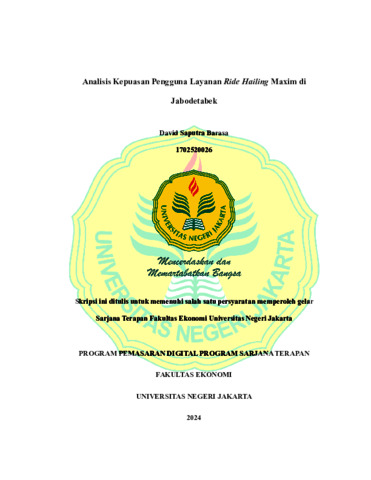 Barasa, David Saputra (2024) Analisis Kepuasan Pengguna Layanan Ride Hailing Maxim di Jabodetabek. S1 thesis, Universitas Negeri Jakarta.