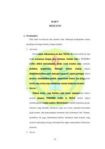 Maulia Ashari, 2023: Strategi Komunikasi Pemasaran TOMORO Coffee Melalui Media Sosial TikTok. Skripsi, Jakarta: Program Studi Sarjana Terapan Pemasaran Digital, Fakultas Ekonomi, Universitas Negeri Jakarta. Tim pembimbing: Agung Kresnamurti Rivai P., ST, M.M dan Meta Bara Berutu, SE., MM. Penelitian ini bertujuan untuk menganalisis strategi komunikasi pemasaran TOMORO Coffee melalui media sosial TikTok. TOMORO Coffee adalah sebuah brand kopi lokal yang ingin meningkatkan visibilitas dan penjualannya melalui platform TikTok. Metode penelitian yang digunakan adalah penelitian kualitatif dengan pendekatan studi kasus. Pengumpulan data dilakukan melalui observasi, wawancara, dan dokumentasi. Subjek penelitian adalah pengguna TikTok yang mengikuti akun resmi TOMORO Coffee @tomorocoffee.id. Hasil penelitian menunjukkan bahwa TOMORO Coffee dalam menerapkan strategi komunikasi pemasaran melalui TikTok berhasil menciptakan awareness dan desire pada konsumen berdasarkan model AIDA. Akan tetapi, untuk meningkatkan konversi menjadi penjualan, perlu ada upaya lebih lanjut untuk interest dan action yang lebih dalam. Kata kunci: Model AIDA, Komunikasi Pemasaran, Media Sosial, TikTok.
