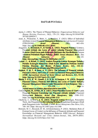 Pricilla, Ani (2024) PENGARUH FINANCIAL LITERACY DAN FINANCIAL ATTITUDE TERHADAP FINANCIAL MANAGEMENT BEHAVIOR YANG DIMEDIASI OLEH LOCUS OF CONTROL. S1 thesis, Universitas Negeri Jakarta.