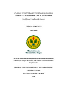 ANASTASYA, YOHANA (2024) ANALISIS EFEKTIVITAS LIVE STREAMING SHOPPING ATTRIBUTES PADA SHOPEE LIVE DI DKI JAKARTA (Studi Kasus Pada Produk Fashion). S1 thesis, Universitas Negeri Jakarta.