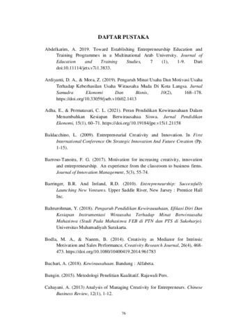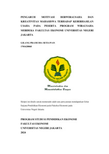 Setiawan, Gilang Pramudia (2024) PENGARUH MOTIVASI BERWIRAUSAHA DAN KREATIVITAS MAHASISWA TERHADAP KEBERHASILAN USAHA PADA PESERTA PROGRAM WIRAUSAHA MERDEKA FAKULTAS EKONOMI UNIVERSITAS NEGERI JAKARTA. S1 thesis, Universitas Negeri Jakarta.