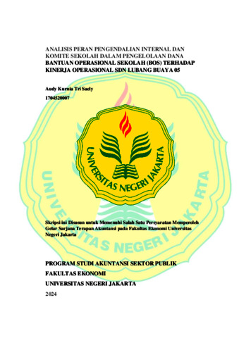 Tri Saely, Audy Kurnia (2024) ANALISIS PERAN PENGENDALIAN INTERNAL DAN KOMITE SEKOLAH DALAM PENGELOLAAN DANA BANTUAN OPERASIONAL SEKOLAH (BOS) TERHADAP KINERJA OPERASIONAL SDN LUBANG BUAYA 05. S1 thesis, Universitas Negeri Jakarta.