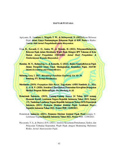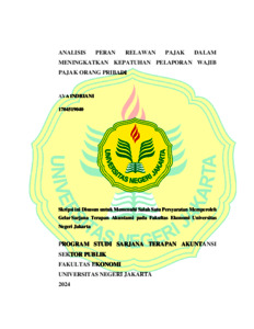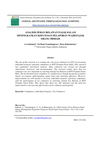 INDRIANI, AVA (2024) ANALISIS PERAN RELAWAN PAJAK DALAM MENINGKATKAN KEPATUHAN PELAPORAN WAJIB PAJAK ORANG PRIBADI. S1 thesis, Universitas Negeri Jakarta.