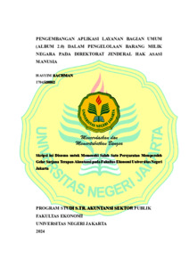 HASYIM RACHMAN. Pengembangan Aplikasi Layanan Bagian Umum (ALBUM 2.0) dalam Pengelolaan Barang Milik Negara Pada Direktorat Jenderal Hak Asasi Manusia. Skripsi. Fakultas Ekonomi. Universitas Negeri Jakarta. 2024 Penelitian ini bertujuan dalam merancang pengembangan sistem informasi pengelolaan Barang Milik Negara di lingkungan instansi pemerintahan sebagai upaya mengoptimalkan fungsi pengawasan internal atas penerapan sistem informasi dan mendigitalisasikan proses pengelolaan Barang Milik Negara. Penelitian ini menjadikan Sekretariat Bagian Umum Direktorat Jenderal Hak Asasi Manusia sebagai objek penelitian karena sistem informasi yang terapkan bagian umum yaitu Aplikasi Layanan Bagian Umum atau disingkat ALBUM memiliki permasalahan berdasarkan hasil analisis permasalahan dan kebutuhan yang sudah dilakukan. Penelitian ini menggunakan desain penelitian Research and Development (R&D) dengan model ADDIE. Tahapan pengembangan dibatasi hingga tahap Desain (Desaign) dengan proses yang dilakukan dengan merancang Data Flow Diagram (DFD) dan desain User Interprise menggunakan CANVA dan FIGMA sebagai alat bantu proses pembuatan desain pengembangan. Berdasarkan hasil analisis perlu adanya pengembangan sistem infomasi pada Aplikasi Layanan Bagian Umum (ALBUM) pada aspek pelayanan internal. Layanan internal yang dapat dikembangkan terdapat pada fitur Barang Persediaan dalam penambahan tampilan tambahan item barang permintaan dan pengembangan kedua yaitu penambahan fitur pinjam pakai Barang Milik Negara. Pengembangan desain sudah sesuai dengan hasil analisis permasalahan dan kebutuhan dari informasi yang didaptkan. Diharapkan Pengembangan yang dilakukan guna mengoptimalkan fungsi pengawasan internal atas penerapan sistem informasi Aplikasi Layanan Bagian Umum (ALBUM) dan pada setiap aspek dalam proses pengelolaan Barang Milik Negara. Kata Kunci: Pengelolaan, Barang Milik Negara, Pengembangan, Sistem Informasi, ADDIE