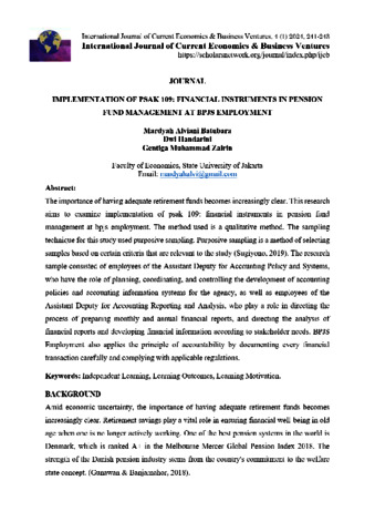 BATUBARA, MARDYAHALVIANI (2024) IMPLEMENTASI PSAK 109: INSTRUMEN KEUANGAN DALAM PENGELOLAAN DANA PENSIUN DI BPJS KETENAGAKERJAAN. S1 thesis, Universitas Negeri Jakarta.