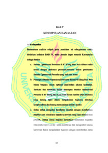 Amelia Putri 1703520017. Analisis Penerapan Standar Operasional Prosedur pada PT. Elang Mas Asia. Program Studi D4 Administrasi Perkantoran Digital, Fakultas Ekonomi, Universitas Negeri Jakarta. Penelitian skripsi ini dilakukan pada PT. Elang Mas Asia dengan maksud dan tujuan untuk mengetahui penerapan standar operasional prosedur yang dilaksanakan di bidang korespondensi pada PT. Elang Mas Asia sudah berjalan dengan sesuai yang telah ditetapkan di dalam standar operasional prosedur dan untuk mengetahui apakah masih terjadi adanya hambatan saat pelaksanaan. Penelitian ini disusun menggunakan metode analisis deskriptif penelitian ini disusun menggunakan metode analisis deskriptif dengan hasil yang didapatkan melalui teknik pengumpulan data menggunakan metode observasi,wawancara, dan dokumentasi, Teknik keabsahan data dengan metode triangulasi dan teknik analisis data menggunakan metode interaktif meliputi pengumpulan data, reduksi data, penyajian data, dan penarikan kesimpulan dengan lama penelitian selaam dalam waktu enam bulan dengan hasil wawancara melalui empat responden. Hasil penelitian ini disimpulkan bahwa penerapan standar operasional prosedur bidang korespondensi pada PT. Elang Mas Asia belum optimal, hal tersebut diakibatkan adanya hambatan internal yaitu sumber daya manusia yang tidak tepat dengan menempatkan pegawai tidak sesuai kualifikasi jobdesk itu sendiri dan sarana prasaran dalam kantor yang kurang memadai sehingga kegiatan tersebut berjalan tidak efektif dan efisien. Kata kunci : Penerapan, Standar Operasional Prosedur, Korespondensi