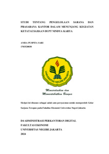SARI, ANISA PUSPITA (2024) STUDI TENTANG PENGELOLAAN SARANA DAN PRASARANA KANTOR DALAM MENUNJANG KEGIATAN KETATAUSAHAAN DI PT NINDYA KARYA. S1 thesis, Universitas Negeri Jakarta.