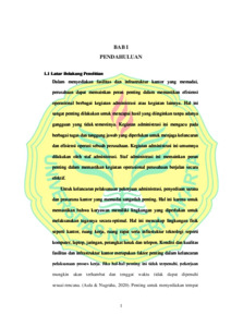 Anisa Puspita Sari. 1703520030. Studi Tentang Pengelolaan Sarana dan Prasarana Kantor Dalam Menunjang Kegiatan Ketatausahaan di PT Nindya Karya. Program Studi D4 Administrasi Perkantoran Digital, Fakultas Ekonomi, Universitas Negeri Jakarta, 2024. Tujuan dari penelitian ini untuk mengetahui proses pengelolaan sarana dan prasarana kantor, mengetahui hambatan yang terjadi dalam proses pengelolaan sarana dan prasarana kantor, dan mengetahui proses pemanfaatan sarana dan prasarana kantor pada Departemen Human Capital PT Nindya Karya. Metode penelitian yang digunakan adalah penelitian kualitatif deskriptif analisis yang melibatkan peneliti secara langsung dengan keadaan di lapangan sehingga peneliti akan lebih mudah memahami proses yang dilakukan serta kendala yang terjadi dalam pengelolaan dan pemanfaatan sarana dan prasarana perkantoran yang terjadi di lapangan. Dalam penelitian kualitatif ini peneliti mengamati objek secara mendalam dengan cara mengumpulkan data tentang objek yang diteliti dan menganalisis datanya. Teknik pengumpulan data diperoleh melalui observasi, wawancara, dokumentasi dan studi pustaka. Hasil penelitian menunjukan bahwa pengelolaan sarana dan prasarana kantor telah dilakukan dengan baik namun masih terdapat hambatan yang terjadi pada rangkaian proses pengelolaan tersebut. Hambatan yang terjadi muncul dari dalam Departemen Human Capital maupun dari pihak yang terlibat dalam proses pengelolaan tersebut yang masih di dalam lingkup internal perusahaan. Proses pemanfaatan sarana dan prasarana kantor dilakukan dalam menunjang kegiatan ketatausahaan ataupun kegiatan lainnya yang terdapat pada Departemen Human Capital PT Nindya Karya. Kata kunci : Sarana, Prasarana, Manajemen, Administrasi Perkantoran
