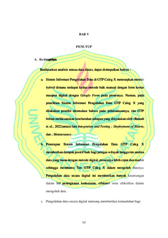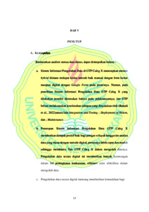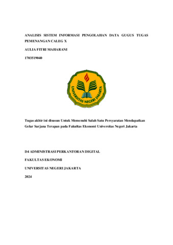 Aulia Fitri Maharani, 2024, 1703519040, Analisis Sistem Informasi Pengolahan Data Gugus Tugas Pemenangan Caleg X. Program Studi D4 Administrasi Perkantoran Digital, Fakultas Ekonomi, Universitas Negeri Jakarta. Penelitian ini dilakukan pada Gugus Tugas Pemenangan Caleg X dengan tujuan untuk mengetahui proses Sistem Informasi Pengolahan Data yang eksisting pada Gugus Tugas Pemenangan Caleg X, dampak negatif yang dirasakan karyawan dalam sistem informasi pengolahan data secara digital dan dampak positif yang dirasakan karyawan dalam sistem informasi pengolahan data secara digital. Desain penelitian ini menggunakan penelitian kualitatif deskriptif dengan pendekatan studi kasus untuk memberikan gambaran menyeluruh tentang analisis sistem informasi pengolahan data Gugus Tugas Pemenangan Celeg X. Unit analisis dalam penelitian ini yaitu tim Gugus Tugas Pemenangan Caleg X. Teknik pengumpulan data dilakukan dengan beberapa metode yaitu observasi, wawancara dan dokumentasi. Hasil penelitian ini menunjukkan bahwa Sistem Informasi Pengolahan Data di GTP Caleg X menerapkan metode hybrid dimana terdapat kedua metode baik manual dengan form kertas maupun digital dengan Google Form pada prosesnya. Namun, pada penelitian Sistem Informasi Pengolahan Data GTP Caleg X yang dilakukan peneliti ditemukan bahwa pada pelaksanaannya, tim GTP belum tahapan Integration and Testing ; Deployment of Sistem, dan ; Maintenance. Penerapan Sistem Informasi Pengolahan Data GTP Caleg X memberikan dampak positif baik bagi petugas wilayah hingga tim analisa data yang mana dengan metode digital, prosesnya lebih cepat dan mudah sehingga membantu Tim GTP Caleg X dalam mengolah datanya. Pengolahan data secara digital ini memberikan banyak keuntungan dalam hal peningkatan keakuratan, efisiensi serta efektifitas dalam mengolah data. Pengolahan data secara digital memang memberikan kemudahan bagi personel yang terkait dalam prosesnya. Namun, tidak dapat dipungkiri bahwa pengolahan data secara digital tetap memiliki dampak negatif dari pelaksanaannya. Pengolahan data secara digital secara garis besar memang membantu proses dan meningkatkan kualitas hasil dari pengolahan data. Namun, tetap dibutuhkan back-up data untuk berjaga-jaga apabila terjadi kejadian yang tidak diinginkan sehingga data yang diolah tetap dapat terjaga serta upgrade skill bagi personel yang bertugas demi kelancaran pelaksanaannya. Kata Kunci : Sistem Informasi, Pengolahan Data, Dampak Pengolahan Data Digital