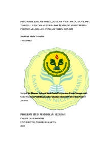 SALSABILA, NAZHIFAH SHAFA’ (2024) PENGARUH JUMLAH HOTEL, JUMLAH WISATAWAN, DAN LAMA TINGGAL WISATAWAN TERHADAP PENDAPATAN RETRIBUSI PARIWISATA DI JAWA TENGAH TAHUN 2017-2022. S1 thesis, Universitas Negeri Jakarta.