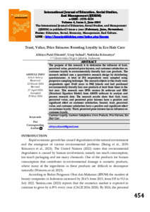 Altisya Putri Dinanti: “Pengaruh Trust, Perceived Value, dan Perceived Price Fairness terhadap Customer Satisfaction dalam Membentuk Customer Loyalty pada Produk Perawatan Rambut Ramah Lingkungan”. Skripsi, Jakarta: Program Studi Manajemen, Fakultas Ekonomi, Universitas Negeri Jakarta. Tim Pembimbing: Prof. Dr. Usep Suhud, M.Si., Ph.D dan Nofriska Krissanya, S.E., M.B.A. Tujuan dari penelitian ini adalah untuk mengetahui pengaruh kepercayaan, nilai yang dirasakan, persepsi keadilan harga, dan kepuasan pelanggan terhadap loyalitas pelanggan pada produk perawatan rambut ramah lingkungan. Metode penelitian menggunakan desain penelitian kuantitatif dengan menyebarkan kuesioner. Sebanyak 254 responden diambil sampelnya dengan menggunakan teknik purposive sampling. Objek penelitian dalam penelitian ini adalah responden berusia 18-60 tahun di DKI Jakarta dan telah melakukan pembelian produk perawatan rambut ramah lingkungan minimal tiga kali dalam setahun terakhir. Penelitian ini menggunakan software SPSS versi 26 dan SEM (Structural Equation Model) dari software AMOS untuk menganalisis dan mengolah data penelitian. Hasil penelitian menunjukkan bahwa: pertama, kepercayaan, persepsi nilai, dan persepsi kewajaran harga berpengaruh positif dan signifikan terhadap kepuasan pelanggan. Kedua, kepercayaan, nilai yang dirasakan, dan kepuasan pelanggan berpengaruh positif dan signifikan terhadap loyalitas pelanggan. Ketiga, persepsi kewajaran harga tidak berpengaruh terhadap loyalitas pelanggan. Kata Kunci: Customer Loyalty, Customer Satisfaction, Green Products, Price Fairness, Eco Hair Care