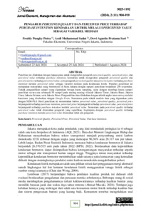 PENGARUH PERCEIVED QUALITY DAN PERCEIVED PRICE TERHADAP PURCHASE INTENTION KENDARAAN LISTRIK MELALUI PERCEIVED VALUE SEBAGAI VARIABEL MEDIASI