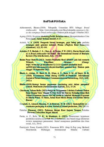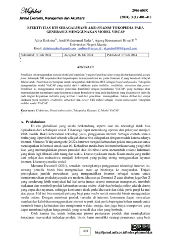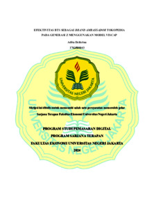 Dzikrina,, Adita (2024) EFEKTIVITAS BTS SEBAGAI BRAND AMBASSADOR TOKOPEDIA PADA GENERASI Z MENGGUNAKAN MODEL VISCAP. S1 thesis, Universitas Negeri Jakarta.