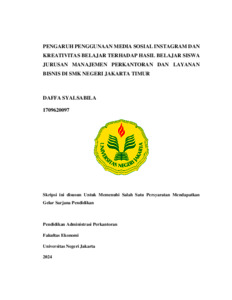 Syalsabila, Daffa (2024) PENGARUH PENGGUNAAN MEDIA SOSIAL INSTAGRAM DAN KREATIVITAS BELAJAR TERHADAP HASIL BELAJAR SISWA JURUSAN MANAJEMEN PERKANTORAN DAN LAYANAN BISNIS DI SMK NEGERI JAKARTA TIMUR. S1 thesis, Universitas Negeri Jakarta.