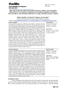 Daffa Syalsabila, 1709620097. Pengaruh Penggunaan Media Sosial Instagram dan Kreativitas Belajar terhadap Hasil Belajar Siswa Jurusan Manajemen Perkantoran dan Layanan Bisnis di SMK Negeri Jakarta Timur. Pendidikan Administrasi Perkantoran. Fakultas Ekonomi. Universitas Negeri Jakarta 2024. Penelitian ini dilakukan di SMK Negeri di wilayah Jakarta Timur dengan metode survey menggunakan kuesioner sebagai instrumen penelitian. Data yang digunakan dalam penelitian ini menggunakan data kuantitatif dengan menggunakan analisis jalur (path analysis). Teknik analisis data dalam penelitian ini menggunakan aplikasi SmartPLS. Populasi penelitian ini yaitu kelas XI MPLB di SMK Negeri di wilayah Jakarta Timur yang berjumlah 144 siswa. Sampel yang digunakan sebanyak 106 siswa dan untuk teknik probability sampling pada pemilihan sampel yakni dengan simple random sampling. Penggunaan skala dalam penelitian ini yaitu skala likert dengan analisis data yang digunakan adalah Structural Equational Modeling-Partial Least Square (SEM-PLS) untuk software yang digunakan SmartPLS versi 3.29 dengan dua tahapan yaitu Inner Model dan Outer Model. Pengujian hipotesis melihat nilai Tstatistik dan nilai P value yang dihasilkan. Hasil penelitian menunjukkan bahwa Kreativitas Belajar berpengaruh positif dan signifikan dalam memediasi Media Sosial Instagram dengan Hasil Belajar. Kata Kunci: Media Sosial Instagram, Kreativitas Belajar, Hasil Belajar