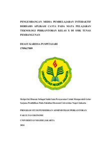 Puspitasari, Deasy Karissa (2024) PENGEMBANGAN MEDIA PEMBELAJARAN INTERAKTIF BERBASIS APLIKASI CANVA PADA MATA PELAJARAN TEKNOLOGI PERKANTORAN KELAS X DI SMK TUNAS PEMBANGUNAN. S1 thesis, Universitas Negeri Jakarta.