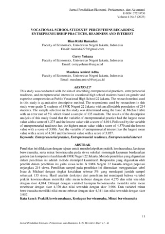Ramadan., Rian Rizki (2024) PENGARUH PRAKTIK KEWIRAUSAHAAN TERHADAP MINAT BERWIRAUSAHA MELALUI KESIAPAN BERWIRAUSAHA SISWA SMKN 22 JAKARTA. S1 thesis, Universitas Negeri Jakarta.