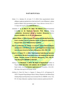 Pramesti, Rizkania Putri (2024) PENGARUH KEPEMIMPINAN TRANSFORMASIONAL DAN BUDAYA ORGANISASI TERHADAP PERILAKU KERJA INOVATIF GURU SMK SWASTA. S1 thesis, Universitas Negeri Jakarta.