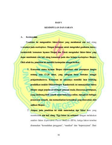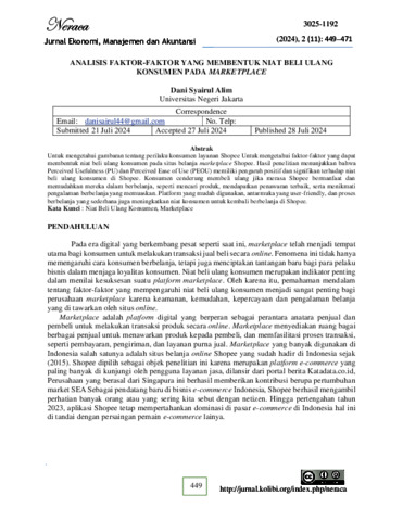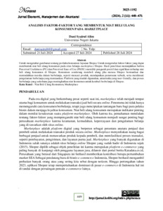 Syairul Alim, Dani (2024) ANALISIS FAKTOR-FAKTOR YANG MEMBENTUK NIAT BELI ULANG KONSUMEN PADA MARKETPLACE. S1 thesis, Universitas Negeri Jakarta.
