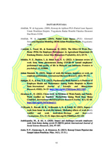 Asel Putrida, 2024; Pengaruh Work From Home terhadap Employee Performance dengan Work Family Conflict dan Happiness sebagai Variabel Mediasi pada Pegawai DPRD DKI Jakarta. Skripsi, Jakarta: Konsentrasi Sumber Daya Manusia, Program Studi S1 Manajemen, Fakultas Ekonomi, Universitas Negeri Jakarta. Tim Pembimbing: Dr. Budi Santoso, M.M. & Dr. Agung Wahyu Handaru, S.T., M.M. Penelitian ini melakukan analisis work from home terhadap employee performance dengan work family conflict dan happiness sebagai variabel mediasi pada pegawai DPRD DKI Jakarta sehingga menemukan kerangka konseptual dan empirik employee performance di DPRD DKI Jakarta. Penelitian ini termasuk jenis penelitian kuantitatif dikarenakan menganalisis data secara numerikal, hipotesis yang telah ditetapkan diuji melalui analisis data kuantitatif atau statis, metode pengumpulan data adalah angket menggunakan Google Form dengan hipotesis yang diuji menggunakan software SmartPLS 4.0. Dalam menentukan sampel pada penelitian menggunakan rumus slovin yang didapatkan hasil 135 sampel. Pengujian hipotesis menggunakan data hasil jawaban kuisioner dari 135 pegawai dengan populasi 200 orang pada DPRD DKI Jakarta. Responden yang dibagi menjadi laki-laki 63 orang dan wanita 72 orang. Hasil uji hipotesis didapatkan hasil bahwa work from home memiliki pengaruh langsung positif signifikan terhadap variabel work family conflict, happiness, dan employee performance. Happiness dan work from home memilki pengaruh langsung positif signifikan terhadap employee performace pegawai. Happiness memediasi pengaruh tidak langsung antara work from home terdahap employee performace pada pegawai DPRD DKI Jakarta. Pegawai memang mengalami masalah dalam menyeimbangkan antara pekerjaan dan keluarga ketika penerapan work from home dilakukan. Tetapi employee performance pegawai dapat terjaga dengan baik, walaupun pegawai mengalami berbagai kesusahan ketika penerapan work from home pegawai dapat berinteraksi dengan keluarga lebih intens dari biasanya sehingga happiness meningkat ketika penerapan work from home. Kata Kunci: Work From Home, Work Family Conflict, Happiness, Employee Performance