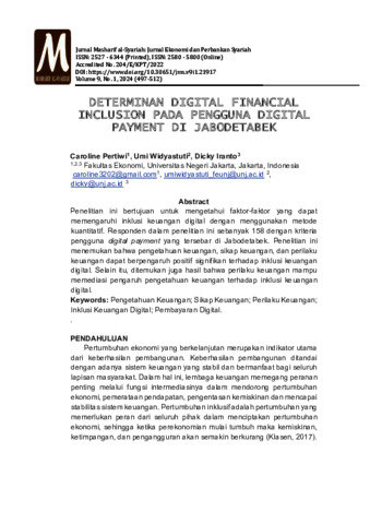DETERMINAN DIGITAL FINANCIAL INCLUSION PADA PENGGUNA DIGITAL PAYMENT DI JABODETABEK