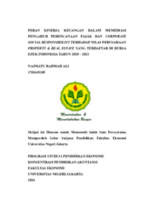 Ali, Najmatu Rahmah (2024) PERAN KINERJA KEUANGAN DALAM MEMEDIASI PENGARUH PERENCANAAN PAJAK DAN CORPORATE SOCIAL RESPONSIBILITY TERHADAP NILAI PERUSAHAAN PROPERTY & REAL ESTATE YANG TERDAFTAR DI BURSA EFEK INDONESIA TAHUN 2020 – 2023. S1 thesis, Universitas Negeri Jakarta.
