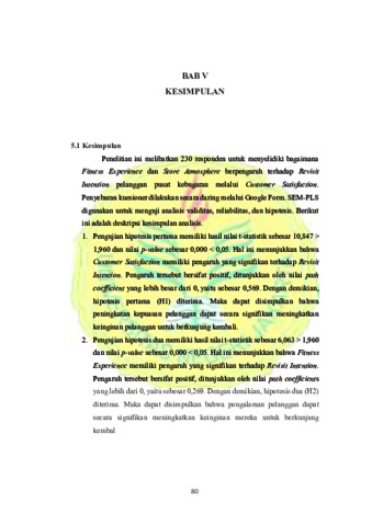 ABSTRAK Fitness Experience dan Store Atmosphere terhadap Revisit Intention dengan Satisfaction sebagai Variabel Intervening pada pusat kebugaran: Studi pada pelanggan fitness di Ekonomi, Universitas Negeri Jakarta. Tim Pembimbing: Andi Muhammad Sadat, SE., M.Si., Ph.D dan Rahmi, S.E., M.S.M Tujuan dari penelitian ini adalah untuk menguji pengaruh: 1) Satisfaction terhadap Revisit Intention. 2) Fitness Experience terhadap Revisit Intention. 3) Store Atmosphere terhadap Revisit Intention. 4) Fitness Experience terhadap Satisfaction. 5) Store Atmosphere terhadap Satisfaction. 6) Store Atmosphere terhadap Fitness Experience. 7) Fitness Experience terhadap Revisit Intention melalui Satisfaction. 8) Store Atmosphere terhadap Revisit Intention melalui Satisfaction. Metode pengumpulan data menggunakan survei dengan instrumen berupa kuesioner yang disebarkan secara online. Teknik pengambilan sampel yang digunakan dalam penelitian ini adalah teknik non-probability sampling. Responden adalah mereka yang pernah atau sedang menjadi pelanggan pusat kebugaran dalam tiga bulan terakhir. Sebanyak 230 responden dilibatkan, data dianalisis dengan menggunakan SmartPLS versi 3.6. Hasil penelitian ini berdasarkan hipotesis menunjukkan bahwa hipotesis Satisfaction terhadap Revisit Intention diterima dan signifikan, Fitness Experience terhadap Revisit Intention diterima dan signifikan, Store Atmosphere terhadap Revisit Intention diterima dan signifikan, Fitness Experience terhadap Satisfaction diterima dan signifikan, Store Atmosphere terhadap Satisfaction diterima dan signifikan, Store Atmosphere terhadap Fitness Experience diterima dan signifikan, Fitness Experience terhadap Revisit Intention melalui Satisfaction diterima dan signifikan, Store Atmosphere terhadap Revisit Intention melalui Satisfaction diterima dan signifikan. Kata kunci: Fitness Experience, Store Atmosphere, Satisfaction, Revisit Intention, Fitness