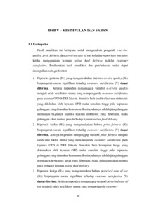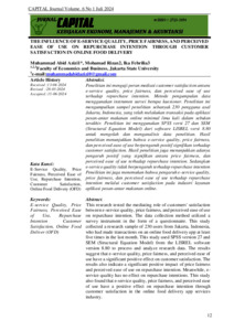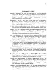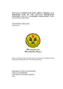 ABSTRAK Muhammad Abid Azizi, 2024; Pengaruh E-Service Quality, Price Fairness, dan Perceived Ease of Use terhadap Repurchase Intention melalui Customer Satisfaction pada Online Food Delivery. Skripsi, Jakarta: Program Studi S1 Manajemen, Fakultas Ekonomi, Universitas Negeri Jakarta, Tim Pembimbing: Prof. Dr. Mohamad Rizan, M.M. & Ika Febrilia, S.E, M.M. Layanan aplikasi online food delivery semakin menarik perhatian seiring dengan meningkatnya tingkat penggunaan. Penelitian ini menyelidiki pengaruh eservice quality, price fairness, dan perceived ease of use terhadap repurchase intention ketika menggunakan layanan aplikasi pesan-antar makanan online. Penelitian ini selanjutnya menguji peran mediasi customer satisfaction antara eservice quality, price fairness, dan perceived ease of use terhadap repurchase intention. Metode pengumpulan data menggunakan instrumen survei berupa kuesioner. Penelitian ini mengumpulkan sampel penelitian sebanyak 230 pengguna asal Jakarta, Indonesia, yang telah melakukan transaksi pada aplikasi pesan-antar makanan online minimal lima kali dalam sebulan terakhir. Penelitian ini menggunakan SPSS versi 27 dan SEM (Structural Equation Model) dari software LISREL versi 8.80 untuk mengolah dan menganalisis data penelitian. Hasil penelitian menunjukkan bahwa e-service quality, price fairness, dan perceived ease of use berpengaruh positif signifikan terhadap customer satisfaction. Hasil penelitian juga menunjukkan adanya pengaruh positif yang signifikan antara price fairness, dan perceived ease of use terhadap repurchase intention. Sedangkan e-service quality tidak berpengaruh terhadap repurchase intention Penelitian ini juga menemukan bahwa pengaruh e-service quality, price fairness, dan perceived ease of use terhadap repurchase intention melalui customer satisfaction pada industri layanan aplikasi pesan-antar makanan online. Kata Kunci: E-Service Quality, Price Fairness, Perceived Ease of Use, Repurchase Intention, Customer Satisfaction, Online Food Delivery (OFD)
