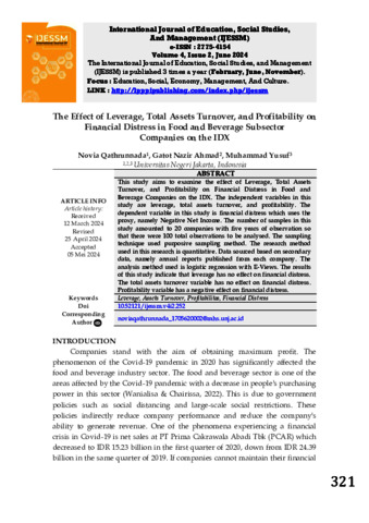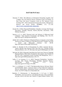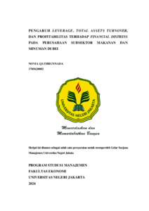 QATHRUNNADA, NOVIA (2024) PENGARUH LEVERAGE, TOTAL ASSETS TURNOVER, DAN PROFITABILITAS TERHADAP FINANCIAL DISTRESS PADA PERUSAHAAN SUBSEKTOR MAKANAN DAN MINUMAN DI BEI. S1 thesis, Universitas Negeri Jakarta.