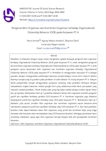 J-Innovative Pengaruh Iklim Organisasi dan Komitmen Organisasi Terhadap OCB Pada Karyawan PT A.pdf Download (298kB) | Preview |