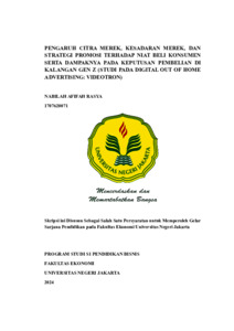 Rasya, Nabilah Afifah (2024) PENGARUH CITRA MEREK, KESADARAN MEREK, DAN STRATEGI PROMOSI TERHADAP NIAT BELI KONSUMEN SERTA DAMPAKNYA PADA KEPUTUSAN PEMBELIAN DI KALANGAN GEN Z (STUDI PADA DIGITAL OUT OF HOME ADVERTISING: VIDEOTRON). S1 thesis, Universitas Negeri Jakarta.