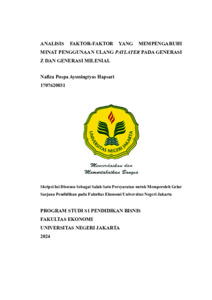 Hapsari., Nafiza Puspa Ayuningtyas (2024) ANALISIS FAKTOR-FAKTOR YANG MEMPENGARUHI MINAT PENGGUNAAN ULANG PAYLATER PADA GENERASI Z DAN GENERASI MILENIAL. S1 thesis, Universitas Negeri Jakarta.