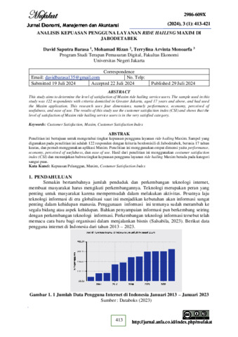 Saputra Barasa, David (2024) Analisis Kepuasan Pengguna Layanan Ride Hailing Maxim di Jabodetabek. S1 thesis, Universitas Negeri Jakarta.