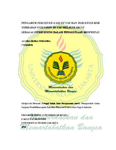 NURANDA, AZARIA RIZKA (2024) PENGARUH PERCEIVED EASE OF USE DAN PERCEIVED RISK TERHADAP INTENTION TO USE MELALUI TRUST SEBAGAI INTERVENING DALAM PENGGUNAAN SHOPEEPAY. S1 thesis, Universitas Negeri Jakarta.