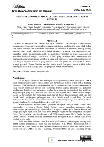 BIMO WIOSKAWURI, HARIO (2024) EFEKTIVITAS PROMOSI MELALUI MEDIA SOSIAL INSTAGRAM KEBAB GENDATS. S1 thesis, Universitas Negeri Jakarta.
