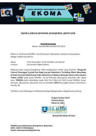 SUWANDARI, PUTRI (2024) PENGARUH LITERASI KEUANGAN SYARIAH DAN KEPERCAYAAN MAHASISWA TERHADAP MINAT MENABUNG DI BANK SYARIAH (STUDI KASUS PADA MAHASISWA FAKULTAS EKONOMI UNIVERSITAS NEGERI JAKARTA TAHUN 2020). S1 thesis, Universitas Negeri Jakarta.