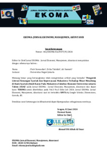 PUTRI SUWANDARI. 1701620011. Pengaruh Literasi Keuangan Syariah dan Kepercayaan Mahasiswa Terhadap Minat Menabung di Bank Syariah (Studi Kasus Pada Mahasiswa Fakultas Ekonomi Universitas Negeri Jakarta Tahun 2020). Jakarta: Program Studi Pendidikan Ekonomi, Fakultas Ekonomi, Universitas Negeri Jakarta, 2024. Penelitian ini bertujuan untuk menguji pengaruh literasi keuangan syariah dan kepercayaan mahasiswa terhadap minat menabung di bank syariah. Pengumpulan data dilakukan di Universitas Negeri Jakarta pada mahasiswa Program Studi Pendidikan, Fakultas Ekonomi Universitas Negeri Jakarta. Penelitian ini merupakan penelitian kuantitatif dengan menggunakan teknik proportional sampling. Total responden dalam penelitian ini adalah 177 responden. Instrumen penelitian menggunakan kuisioner. Teknik analisis data menggunnakan uji regresi linear berganda, uji T, uji F, dan uji koefisien determinasi. Hasil yang didapat dalam penelitian menunjukkan bahwa literasi keuangan syariah berpengaruh positif dan signifikan terhadap minat menabung di bank syariah, kepercayaan mahasiswa berpengaruh positif dan signifikan terhadap minat menabung di bank syariah, serta literasi keuangan syariah dan kepercayaan mahasiswa berpengaruh positif dan signifikan terhadap minat menabung di bank syariah. Implikasi pada penelitian ini menunjukkan bahwa perlunnya meningkatkan kesadaran dan pendidikan mengenai keuangan syariah di lingkungan akademis, sehingga dapat memperkuat kepercayaan mahasiswa. Dengan begitu, semakin tingginya tingkat literasi keuangan syariah dan kepercayaan mahasiswa, maka akan meningkatkan pula minat menabung di bank syariah. Kata Kunci: Literasi keuangan syariah, kepercayaan mahasiswa, dan minat menabung