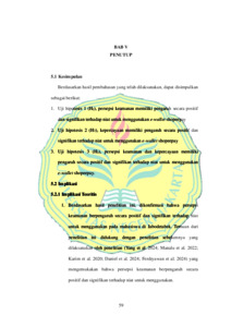 ABSTRAK Silva Arum Fatmay Dilah. Pengaruh Persepsi Keamanan dan Kepercayaan terhadap Niat Untuk Menggunakan E-Wallet ShopeePay pada Mahasiswa di Jabodetabek. Jakarta: Program Studi Pendidikan Bisnis, Fakultas Ekonomi, Universitas Negeri Jakarta, 2024. Penelitian ini bertujuan untuk mengidentifikasi, menghitung, dan menganalisis pengaruh persepsi keamanan dan kepercayaan terhadap niat menggunakan ewallet ShopeePay pada pelajar di Jabodetabek. Metode yang digunakan peneliti dalam penelitian ini adalah pendekatan kuantitatif. Termasuk juga data yang diperoleh menyebarkan kuesioner melalui Google Form dengan menggunakan teknik purposive sampling. Jumlah peserta survei yang dilakukan sebanyak 200 orang, yang terdiri dari 52 responden laki-laki dan 148 responden perempuan, yang berdomisili di Jabodetabek. Penelitian ini menggunakan software SPSS 29. Hasil perhitungan dari penelitian ini adalah persepsi keamanan berpengaruh positif dan signifikan terhadap niat penggunaan, kepercayaan berpengaruh positif dan signifikan terhadap niat penggunaan, dan persepsi keamanan dan kepercayaan berpengaruh positif dan signifikan terhadap niat penggunaan. Kata Kunci: Persepsi Keamanan, Kepercayaan, Niat Untuk Menggunakan, ShopeePay