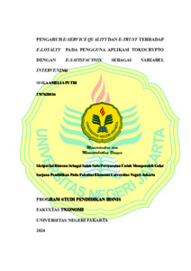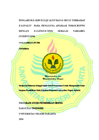 ABSTRAK SISKA AMELIA PUTRI, 1707620016, Pengaruh E-Service Quality Dan ETrust Terhadap E-Loyalty Pada Pengguna Aplikasi Tokocrypto Dengan ESatisfaction Sebagai Variabel Intervening. Skripsi, Jakarta: Program Studi Pendidikan Bisnis, Fakultas Ekonomi, Universitas Negeri Jakarta, 2024. Penelitian ini dilakukan untuk mengetahui pengaruh e-Service Quality dan e-Trust terhadap e-Loyalty pada aplikasi Tokocrypto dengan e-Satisfaction sebagai Intervening. Penelitian ini menggunakan metode kuantitatif dengan instrumen survei. Pengumpulan data dilakukan dengan teknik non probabilty sampling yaitu purposive sampling dengan mengambil sampel 210 responden. Kemudian jawaban responden yang telah diperoleh diolah menggunakan Teknik analisis data Structural Emotional Modelling Partial Least Square (SEM-PLS) dengan menggunakan software SmartPLS 3.0. Dari pengujian hipotesis dalam penelitian ini diperoleh hasil, bahwa terbukti 1) e-Service Quality berpengaruh terhadap e-Satisfaction, 2) e-Trust tidak berpengaruh terhadap e-Satisfaction, 3) e-Satisfaction berpengaruh terhadap e-Loyalty, 4) e-Service Quality berpengaruh terhadap e-Loyalty, 5) e-Trust berpengaruh terhadap e-Loyalty, 6) e-Service Quality berpengaruh terhadap eLoyalty melalui e-Satisfaction dan 7) e-Trust tidak berpengaruh terhadap e-Loyalty melalui e-Satisfaction. kata kunci: e-loyalty, e-satisfaction, e-service quality, e-trust, tokocrypto, blockchain