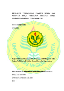 ABSTRAK FANNY DWI JUNIATY. 1709618088. Pengaruh Pengalaman Praktik Kerja Dan Motivasi Kerja Terhadap Kesiapan Kerja Mahasiswa Sarjana Terapan FE UNJ. Skripsi. Jakarta: Program Studi Pendidikan Administrasi Perkantoran. Fakultas Ekonomi. Universitas Negeri Jakarta. 2024. Penelitian ini bertujuan untuk mengetahui dan menganalisis: (1) pengaruh langsung pengalaman praktik kerja terhadap kesiapan kerja, (2) pengaruh langsung motivasi kerja terhadap kesiapan kerja, (3) pengaruh langsung pengalaman praktik kerja dan motivasi kerja terhadap kesiapan kerja. Penelitian ini merupakan penelitian kuantitatif dengan populasi seluruh mahasiswa Sarjana Terapan FE UNJ. Pengambilan sampel pada penelitian ini menggunakan probability sampling, dan sampel dihitung menggunakan tabel Isaac and Michael yaitu sebanyak 123 mahasiswa sarjana terapan FE UNJ Tahun 2020. Teknik pengumpulan data menggunakan kuesioner. Teknik analisis data yang digunakan adalah analisis deskriptif, persamaan regresi berganda, uji persyaratan analisis, uji hipotesis, analisis dan analisis koefisien determinasi. Hasil penelitian menunjukkan pengalaman praktik kerja berpengaruh positif dan signifikan terhadap kesiapan kerja, motivasi kerja berpengaruh positif dan signifikan terhadap kesiapan kerja mahasiswa, serta pengalaman praktik kerja dan motivasi kerja secara simultan berpengaruh positif dan signifikan terhadap kesiapan kerja mahasiswa Sarjana Terapan FE UNJ. Kata Kunci : Pengalaman Praktik Kerja, Motivasi Kerja, Kesiapan Kerja