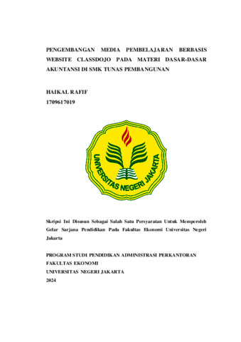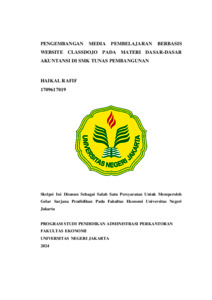 ABSTRAK Haikal Rafif, 1709617019. Pengembangan Media Pembelajaran Berbasis Website ClassDojo pada Materi Dasar-dasar Akuntansi di SMK Tunas Pembangunan: Fakultas Ekonomi, Universitas Negeri Jakarta. 2024 Penelitian ini bertujuan untuk mengembangkan dan mengevaluasi efektivitas penggunaan ClassDojo.com sebagai media pembelajaran di SMK Tunas Pembangunan. Penelitian ini menggunakan metode Research and Development (R&D) dengan model ADDIE (Analysis, Design, Development, Implementation, Evaluation). Pada tahap analisis, dilakukan kajian literatur dan survei untuk mengidentifikasi kebutuhan dan kendala dalam proses pembelajaran. Tahap desain melibatkan pembuatan rencana pembelajaran yang terintegrasi dengan fitur-fitur ClassDojo. Pengembangan dilakukan dengan merancang materi dan aktivitas pembelajaran yang diunggah ke platform tersebut. Implementasi dilakukan pada siswa kelas X di SMK Tunas Pembangunan, dengan menggunakan pendekatan campuran (mixed-methods) untuk mengumpulkan data. Instrumen yang digunakan meliputi observasi dan wawancara. Hasil penelitian menunjukkan bahwa penggunaan ClassDojo.com dapat meningkatkan keterlibatan siswa, mempermudah komunikasi antara guru dan orang tua, serta memperbaiki manajemen kelas. Evaluasi akhir menunjukkan bahwa penggunaan ClassDojo.com sebagai media pembelajaran efektif dalam meningkatkan motivasi dan hasil belajar siswa. Penelitian ini menyarankan agar guru lebih memanfaatkan teknologi dalam proses pembelajaran dan mengintegrasikan berbagai fitur ClassDojo untuk meningkatkan kualitas pendidikan. Kata kunci: ClassDojo.com, media pembelajaran, Research and Development, ADDIE, Website