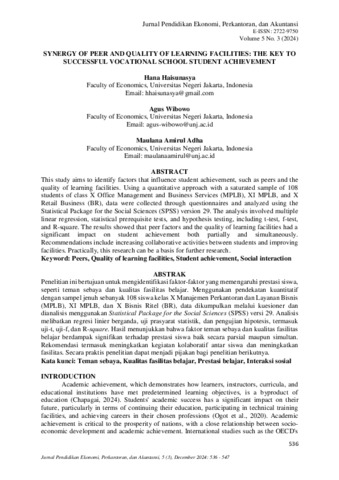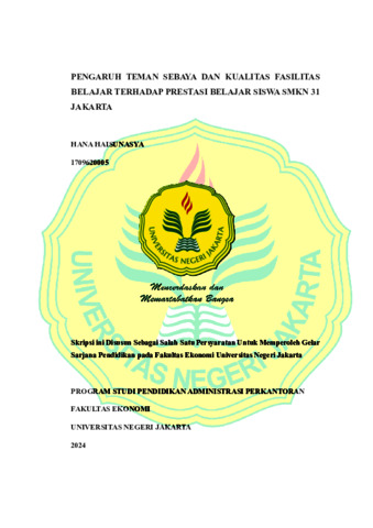 Haisunasya, Hana (2024) PENGARUH TEMAN SEBAYA DAN KUALITAS FASILITAS BELAJAR TERHADAP PRESTASI BELAJAR SISWA SMKN 31 JAKARTA. S1 thesis, Universitas Negeri Jakarta.