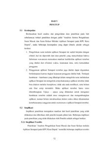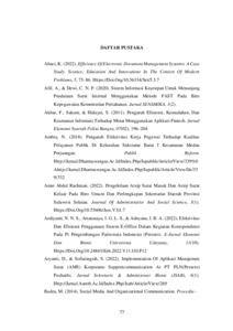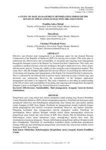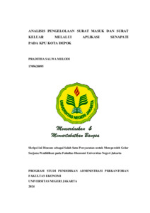 ABSTRAK Praditha Salwa Melodi, 2024. Analisis Pengelolaan Surat Masuk dan Surat Keluar Melalui Aplikasi Senapati Pada KPU Kota Depok. Program Studi S-1 Pendidikan Administrasi Perkantoran, Fakultas Ekonomi, Universitas Negeri Jakarta. Penelitian ini bertujuan untuk menganalisis efektivitas dan sustainability dalam pengelolaan surat masuk dan surat keluar melalui aplikasi Senapati di Komisi Pemilihan Umum (KPU) Kota Depok. Metode penelitian yang digunakan adalah kualitatif dengan pendekatan studi kasus. Pengumpulan data dilakukan melalui wawancara mendalam dengan pengguna aplikasi Senapati di KPU Kota Depok serta analisis dokumen terkait. Hasil penelitian menunjukkan bahwa aplikasi Senapati efektif dalam meningkatkan pengelolaan surat di KPU Kota Depok dengan menyediakan platform terintegrasi untuk pencatatan, penanganan, dan monitoring surat. Dengan aplikasi ini, proses administrasi menjadi lebih efisien dan transparan, memungkinkan pengguna untuk melacak status surat secara real-time dan meminimalisir risiko kehilangan atau kekurangan dokumentasi. Selain itu, aplikasi Senapati juga meningkatkan kolaborasi antarbagian dalam organisasi, mengoptimalkan responsivitas terhadap permintaan informasi, dan mendukung pengambilan keputusan yang lebih tepat waktu. Untuk menjaga sustainability dari pengelolaan surat dengan aplikasi Senapati, penelitian menyarankan perlunya upaya berkelanjutan dalam mengelola kualitas data yang tercatat, memberikan pelatihan berkala kepada pengguna, serta melakukan evaluasi rutin terhadap kinerja sistem. Hal ini penting untuk memastikan bahwa aplikasi Senapati dapat terus berfungsi optimal dan mendukung efektivitas pengelolaan surat jangka panjang di KPU Kota Depok. Penelitian ini memberikan kontribusi dalam memperdalam pemahaman tentang penerapan teknologi informasi dalam konteks administrasi publik, dengan fokus pada efisiensi operasional, transparansi, dan keberlanjutan sistem. Kata kunci: pengelolaan surat, aplikasi Senapati, efektivitas, sustainability, KPU Kota Depok